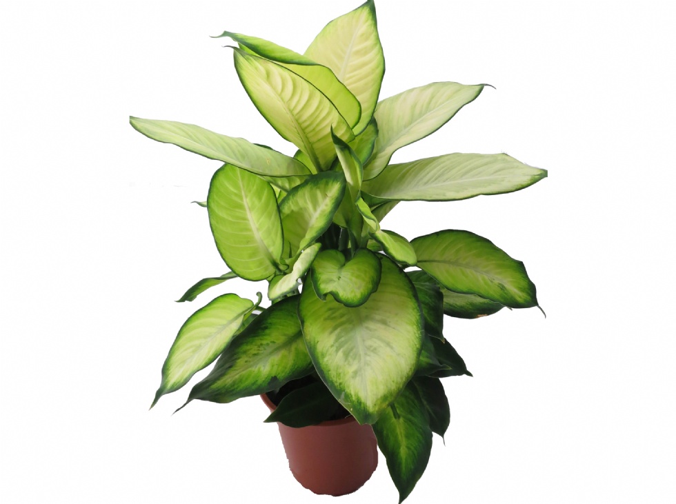 Dieffembachia “Camilla”. Gracias a su colorido, verde y blanco, aporta luz y frescor al ambiente. De mantenimiento muy sencillo, hay que tener en cuenta que la sabia de esta planta de origen tropical es tóxica. Dieffembachia “Camilla”